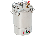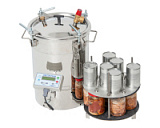 Универсальны и одинаково качественно работают на газовой и электрической плите. Стоят дешевле и экономичнее в эксплуатации, так как позволяют экономить на коммунальных платежах по электричеству. Изготовлены из нержавеющей стали, устойчивой к температурному воздействию, марки AISI 304. Аппарат на 22 л вмещает 14 поллитровых или 4 литровых стеклянных банки, 46 л — 24 и 9 соответственно. Предварительная стерилизация тары не требуется. Для защиты от аварийного повышения давления и температуры на крышке установлен противоаварийный предохранительный клапан. Необходимо контролировать встроенные термометр и манометр лично.